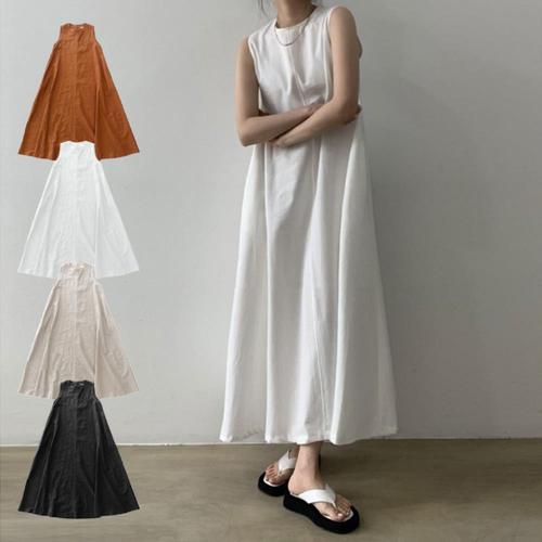 [옷자락] 여자 여유핏 라운드넥 민소매 롱 데일리 원피스