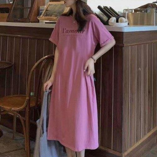 여성 신상 홈웨어 데일리룩 밑단트임 오버핏 반팔 원피스