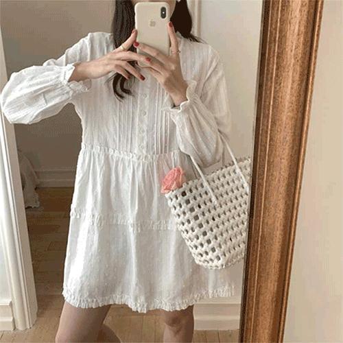 [르뚜앙]로그인 봄 가을 퍼프 긴팔 레이스 프릴 미니 원피스 루즈핏 빅사이즈 키작녀 데일리룩 휴양지룩 ..