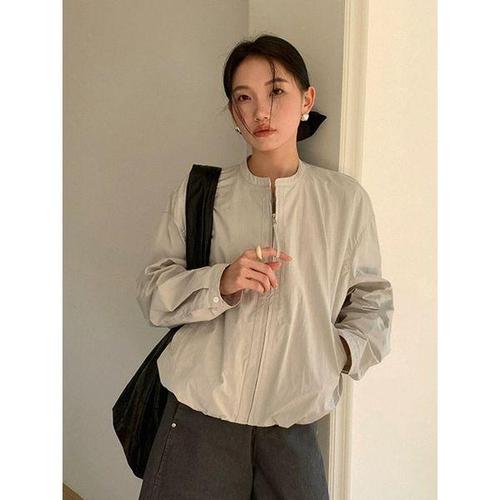 [샵앤]여성 노카라 심플 데일리 바람막이 자켓 21DS-WJP-4874-베이지