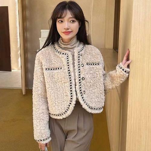 [르뚜앙]몽잼 하이넥 울 숏 크롭 자켓 노카라 간절기 아우터 봄 가을 겨울 하객룩 데일리룩 베이지 아이..