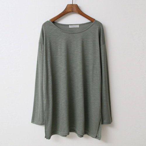 벅시루 여성 20수 빈티지 언발란스 슬라브 여자 미시옷 간절기 스판 데일리 긴팔 라운드티