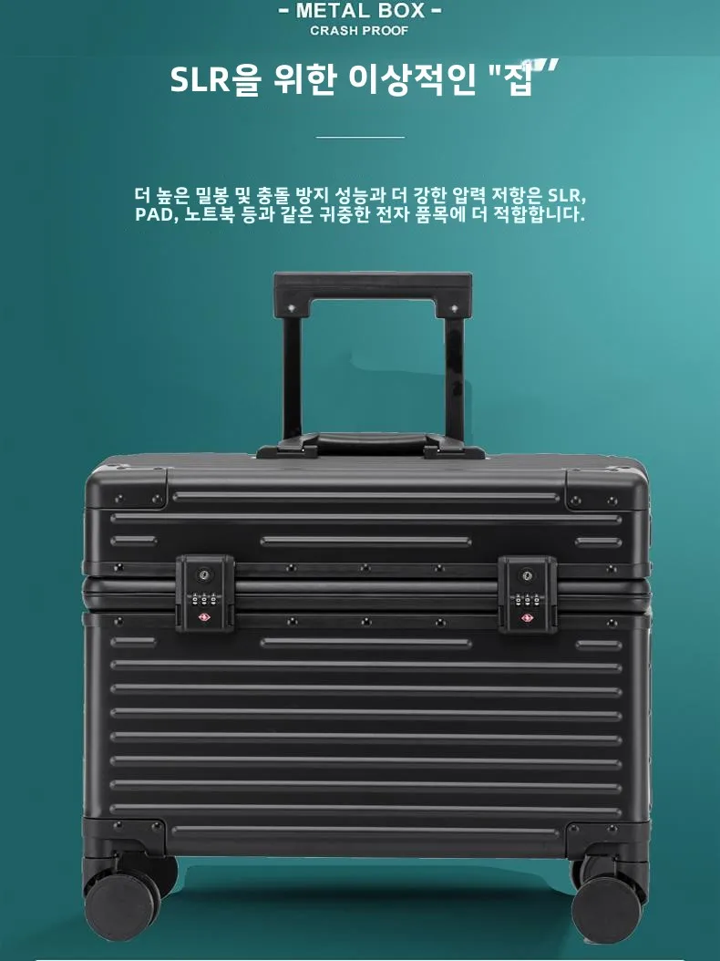 올 알루미늄 마그네슘 합금 사진 촬영용 캐리어 탑 플립 커버 8인치 카메라 박스 유니버설 휠 남성 여성용 가죽 박스
