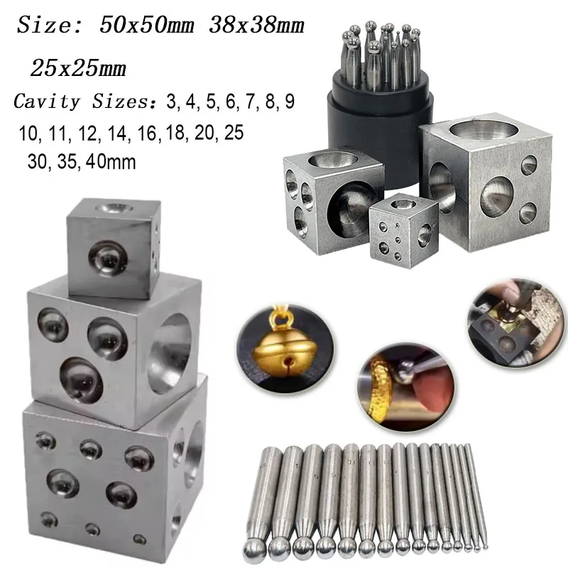 광택 처리된 고탄소강 캐비티가 있는 다핑 블록 사각형 벨 제작 펀칭 도구 보석 제작 도구