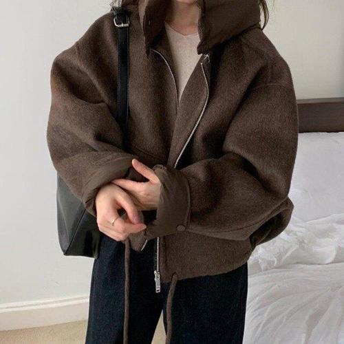 [핑크엘리제]루즈핏 볼륨카라 아우터 도브셰이드자켓