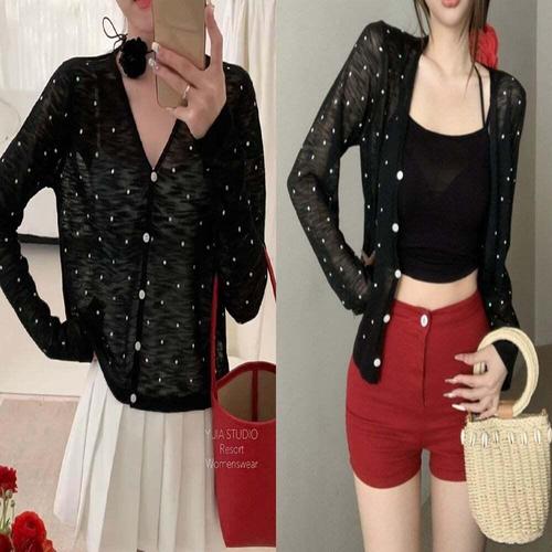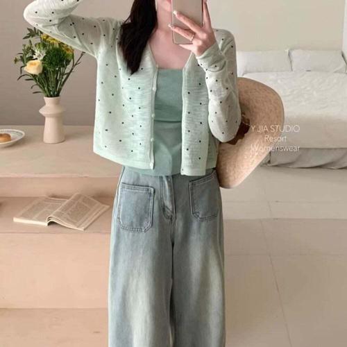 [셀럽하우스]여성 OAJT8491 여름 긴팔 니트 도트가디건 휴가복 깔끔