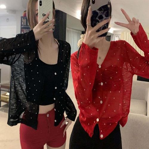 [셀럽하우스]여성 FOOZ0582 5컬러 봄 여름 얇은 니트 시스루 도트가디건