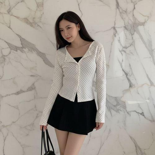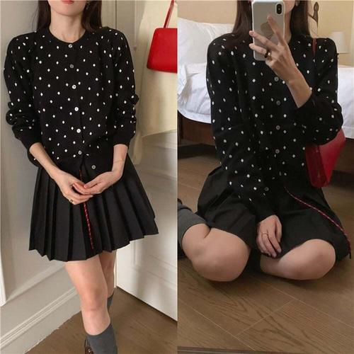 [셀럽하우스]러블리 MCJM8688 땡땡이 가디건 여자 베이직 도트 카디건