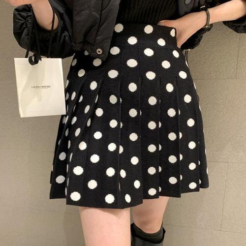 [퍼니걸스]도트 땡땡이 플리츠 니트 미니 스커트 5868 여성의류