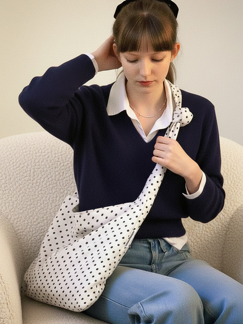 모미 도트 캐주얼 새틴 매듭 에코백 귀여운 숄더 가방