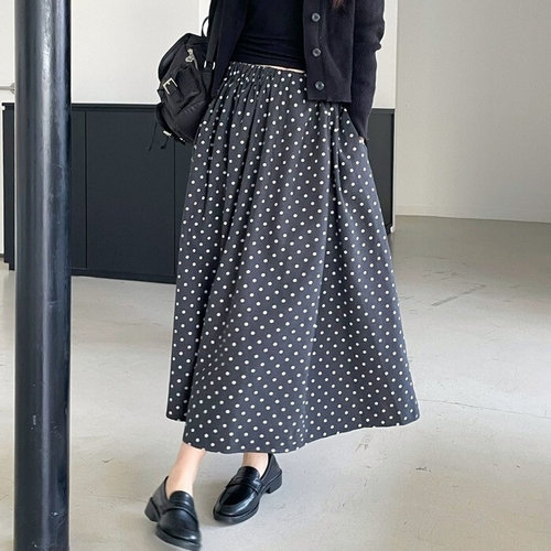 피어니스트 도트 패턴 일자 롱 스커트