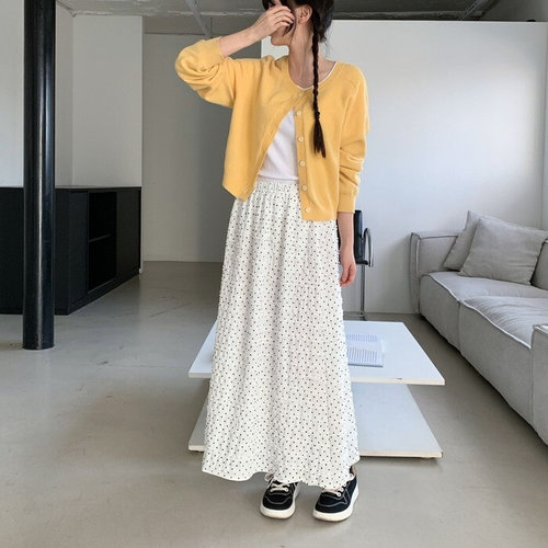 [모노무드]모노무드 허리밴딩 쉬폰 롱스커트 도트패턴 속치마 봄가을 치마