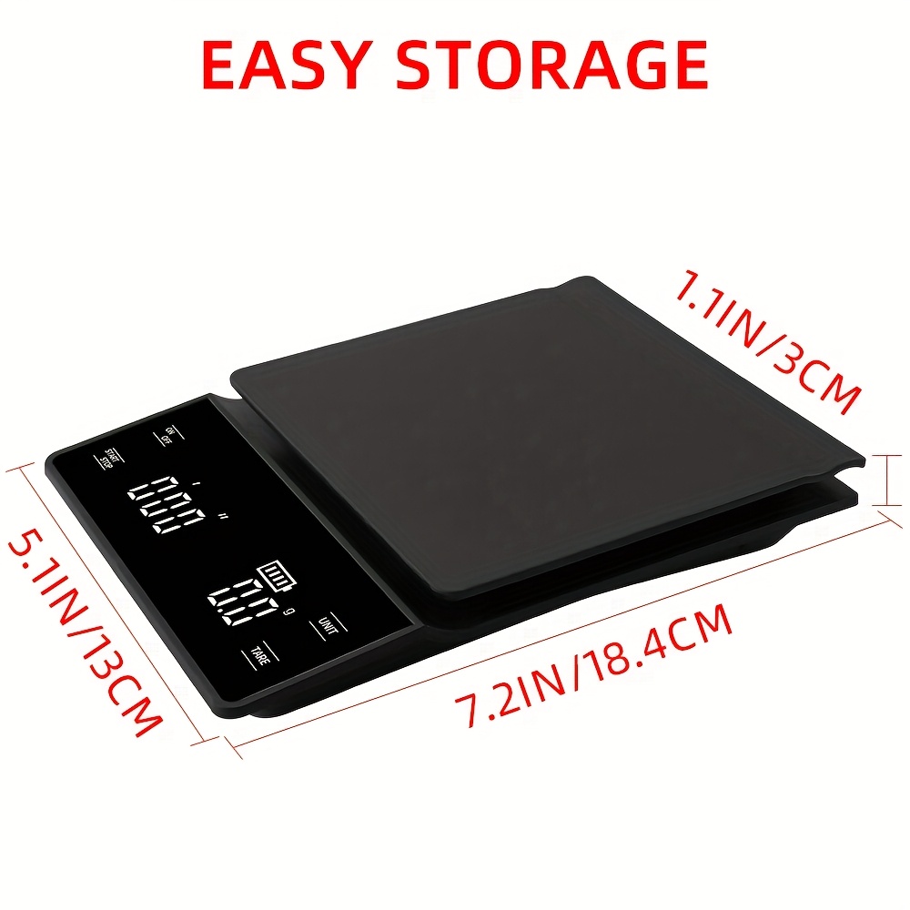 TEMU 3kg 대용량 디지털 주방 계량 커피 계량 전문급 정밀 측정 빠른 원버튼 제로링, 편리한 단위 변환 내장 실용적인 타이머 기능 비스듬한 실리콘 패드가 있는, 주방 조리, 보석 식별, 과학 실험, 미세 측정 포함되지 않음