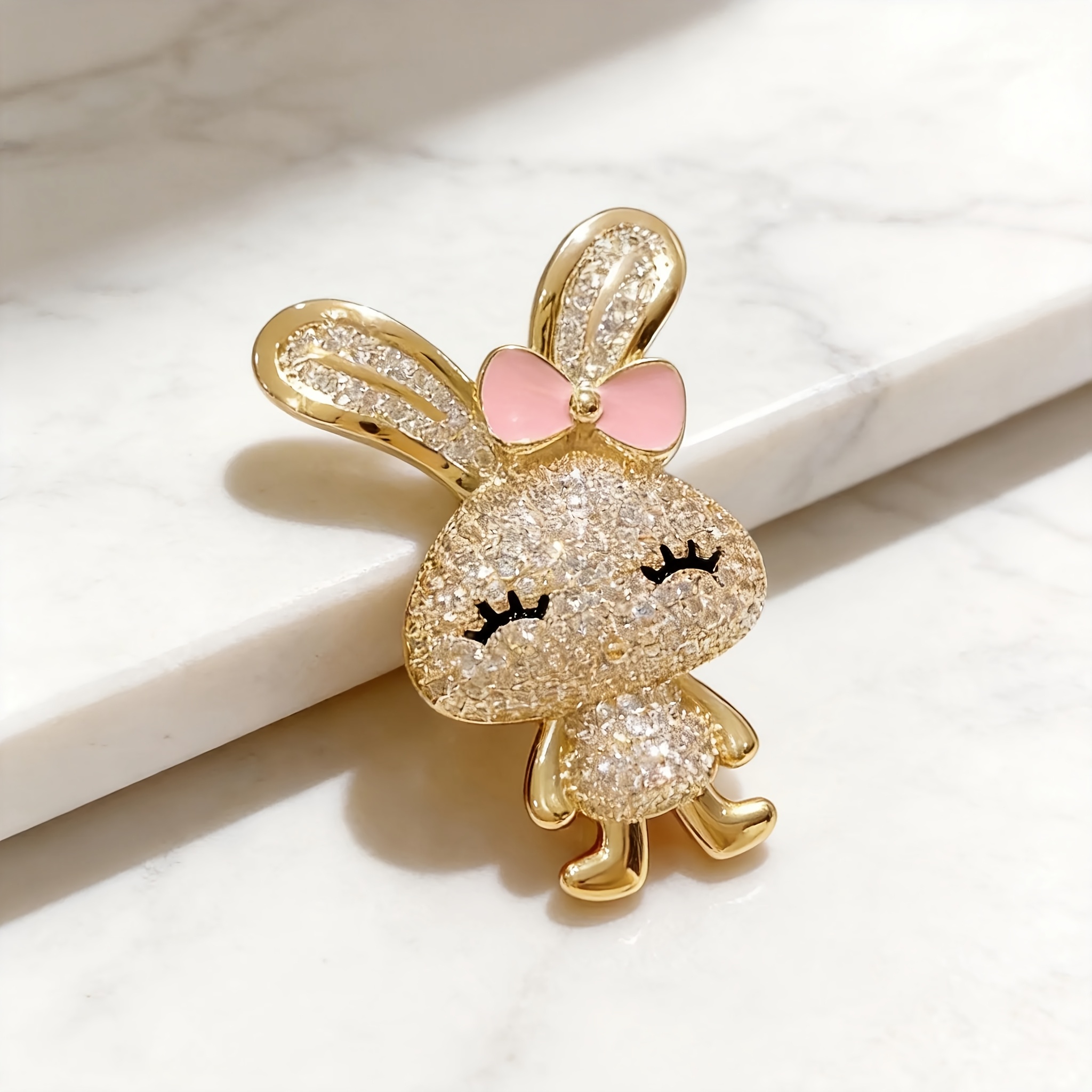 TEMU 새로운 동물 풀 라인석 귀여운 브로치 기품 있는 슈퍼 큐트 토끼 가슴꽃 여성 의류 액세서리 라인석 브로치 주얼리