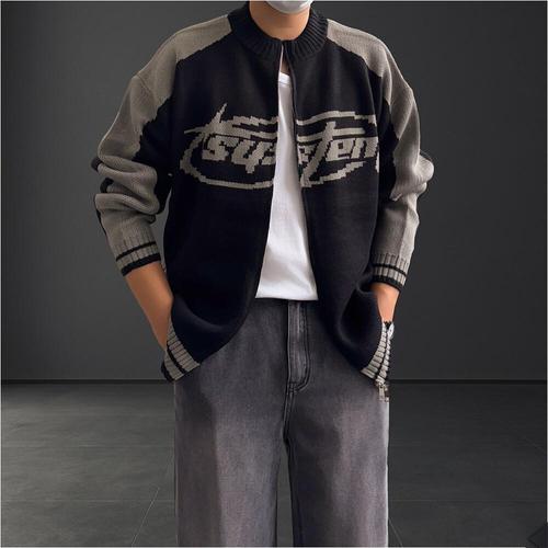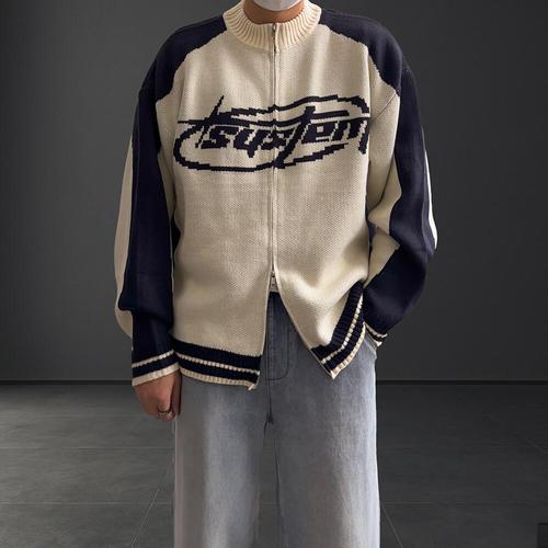 [노멀쉐이크]시스 투웨이 니트 집업 가디건 오버핏 드롭숄더 봄 가을 겨울 아우터 레터링 두꺼운 힙 스트릿