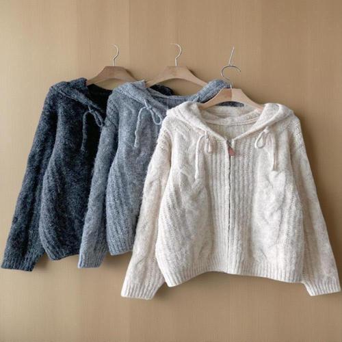 [신상오픈런]여성 클래식 꽈배기 두꺼운 후드 집업 니트 가디건