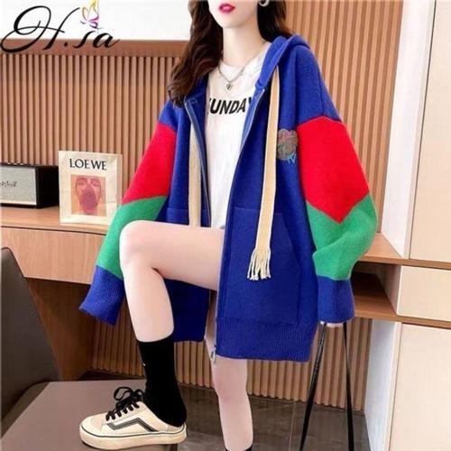 여친 니트 가을 겨울 트렌디 아이템 카디건 후드 쉐퍼드 스웨터 두꺼운 상의 HT4