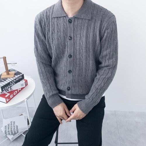 [모노폴로지]꽈배기 남녀공용 니트 가디건 코디 오버핏 카라 울가디건 두꺼운 따뜻한 가을 겨울 가디건