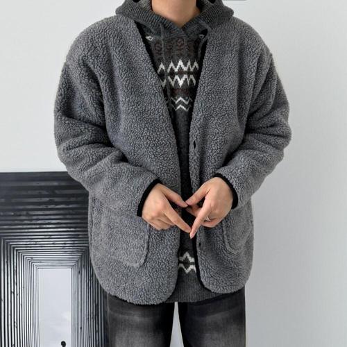 [모노폴로지]양털 뽀글이 오버핏 브이넥 무지 두꺼운 3버튼 가디건 데일리 포근한 아우터