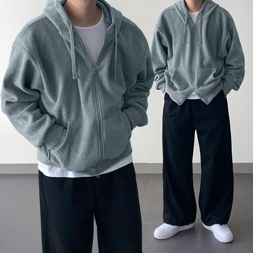 1+1 남자 심플 긴팔 후드티 맨투맨 오버핏 무지 후드집업 빅사이즈 트레이닝복 기모 두꺼운 데일리 캐주얼 상의 루즈핏 학생 아우터 상의