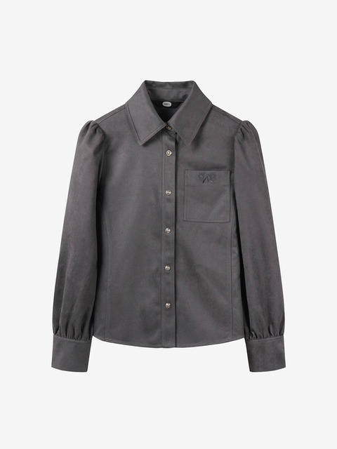 [듀엘] 로고 자수 스웨이드 블라우스 GR_L254PSC043