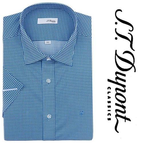 듀퐁셔츠 SE5MM11HS102SBU 비지니스 주머니없는 스트레치 블루 반팔 일반 핏 셔츠(반소매)