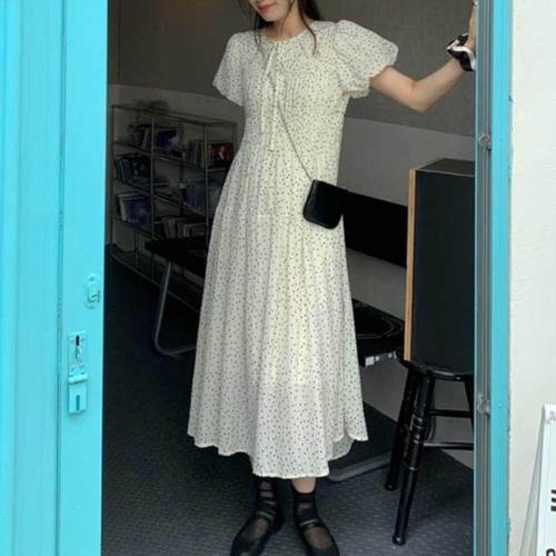 bns 여성스러운 쉬폰 롱원피스 잔잔한 도트 드레스 WFLRN9S
