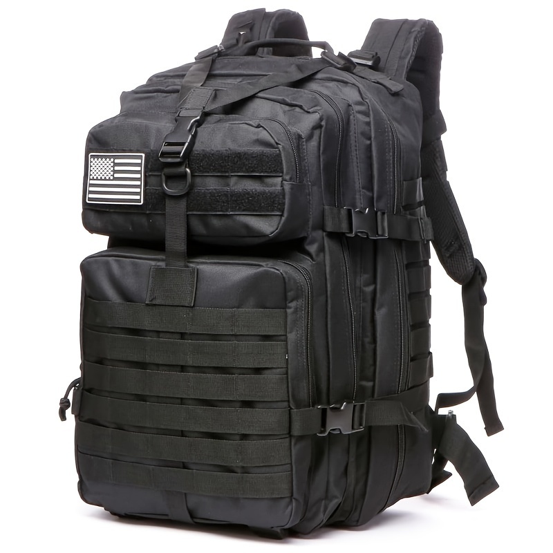 TEMU 45L 헤비 듀티 택티컬 백팩 (미국 국기 포함) - 남성용 대용량 아웃도어 백팩, 하이킹, 캠핑, 등반, 스포츠 - 몰리 시스템 호환
