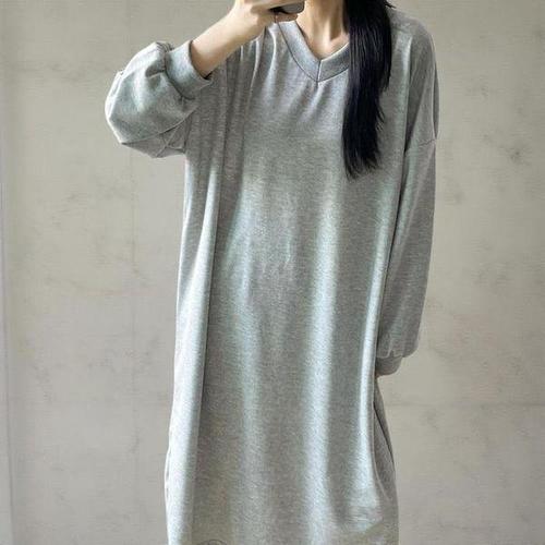 [다잇템_패션]여성 코튼 V넥 등원복 빅사이즈 롱드레스