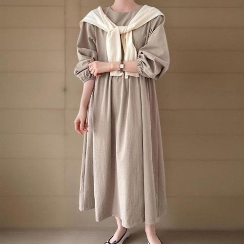 [다잇템][다잇템] 여성 임부 잔주름 등원복 소매 벌룬 FW 드레스 큰사이즈 롱드레스_22574324_588872
