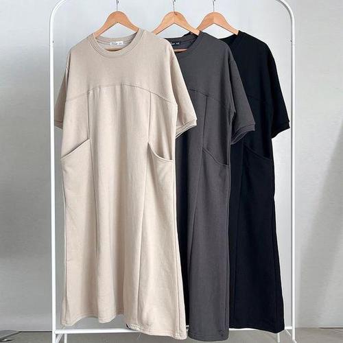 [다잇템][다잇템] 여성 컷아웃 반소매 주머니 대형 FW 드레스 롱 등원복_22887832_588872