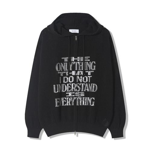 [리빌모아]남자 레터링 펀칭 메쉬 후드집업 니트 RM-KN-Q086-블랙