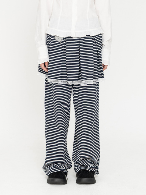 [하이스쿨디스코] 스트라이프 패치 스커트 팬츠