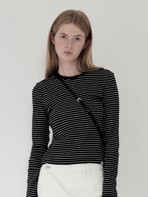 [키르시] 키르시 플레인 스트라이프 슬림핏 롱슬리브 [블랙]