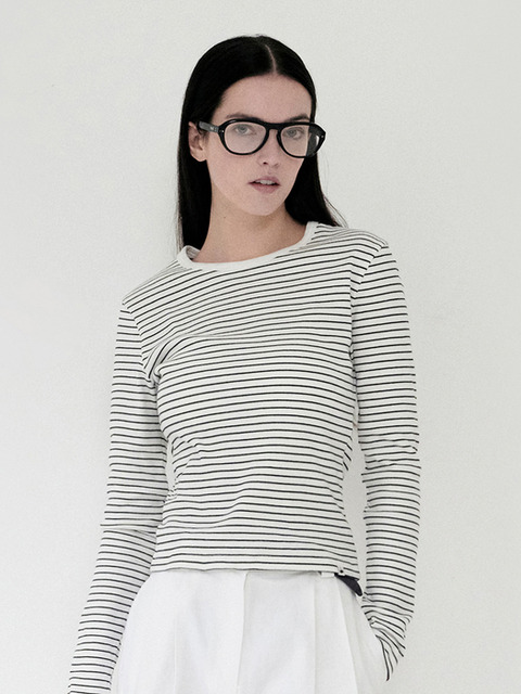 [키르시] 키르시 플레인 스트라이프 슬림핏 롱슬리브 [화이트]