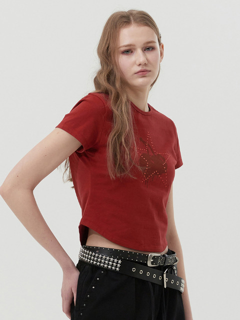 [키르시] 멜팅 체리 프린트 크롭 티셔츠 [레드]