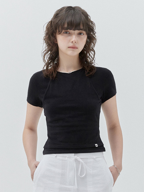 [키르시] 키르시 플레인 더블 레이어드 티셔츠 [블랙]