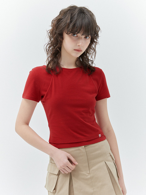 [키르시] 키르시 플레인 더블 레이어드 티셔츠 [레드]