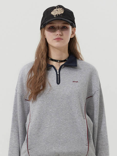 [키르시] 오픈 카라 스웨트셔츠 [멜란지 그레이]
