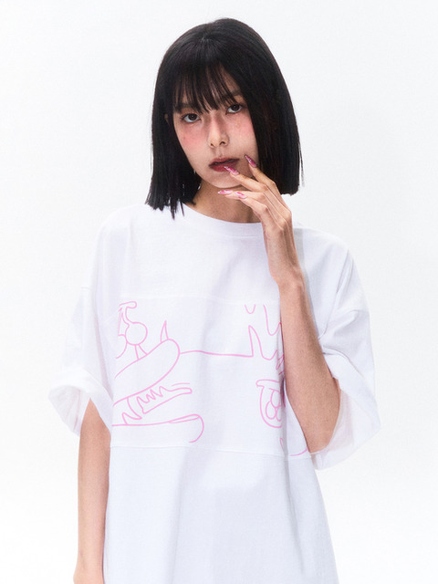 [키르시] 키르시 X 썬원버드 빅 오버 사이즈 아이 티셔츠 [화이트]