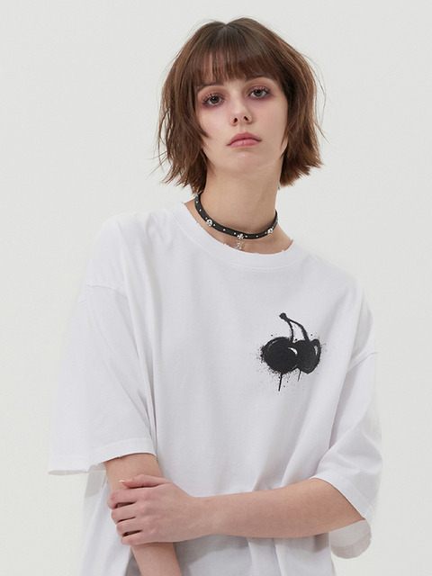[키르시] 멜팅 체리 피그먼트 워싱 티셔츠 [화이트]