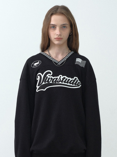 [키르시] 키르시 X 비바스튜디오 오버핏 바시티 스웨트셔츠 [블랙]