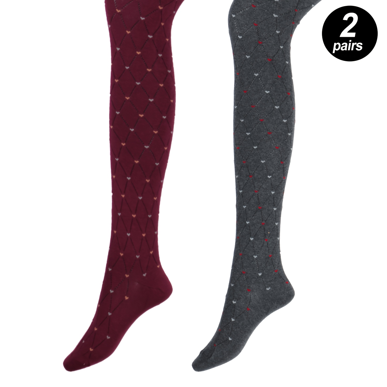 TEMU 가을/겨울용 2팩 자카드타이츠, 하트무늬 디자인, 편안함과 따뜻함을 위한 100% 레이온-폴리에스터 혼방