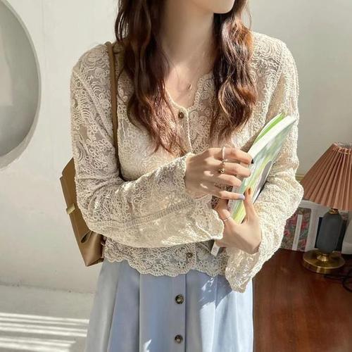 [라일리여성의류] Rly WL 여성 여름 긴팔 뜨개 니트 시스루 가디건