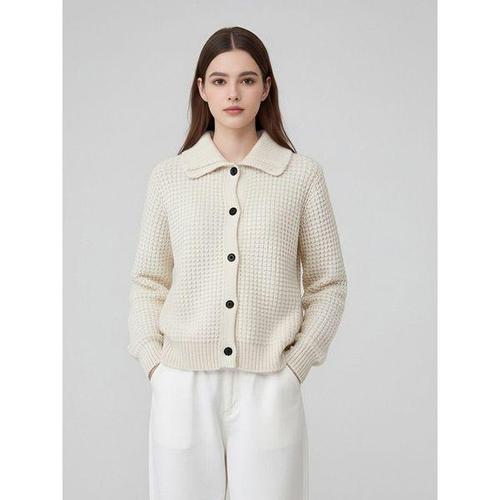 [비꼴리끄(여성)]손뜨게 트리밍 캐시미어 가디건 B234KC1020