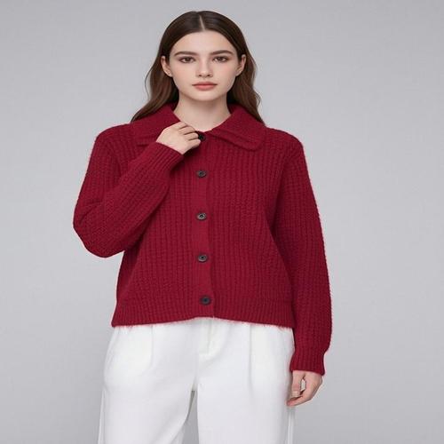 [모노무드]LMO 페미닌 셔츠칼라니트립 뜨개탑 트렌디 니트가디건