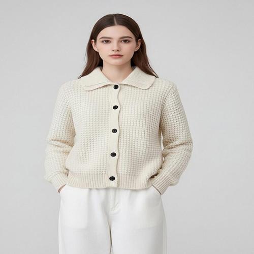 지디오 여성 니트 가디건 크롭 간절기 숏 긴팔 브이넥 루즈핏 진주 버튼 소프트 봄 가을 아우터