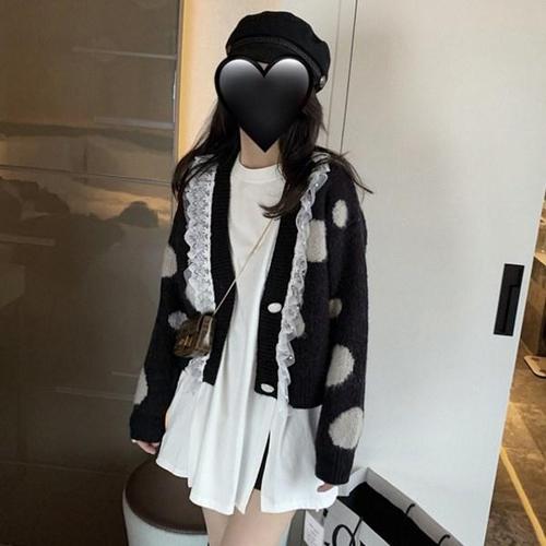 [다잇템]여자 진주 레이스 프리사이즈 V넥 가디건