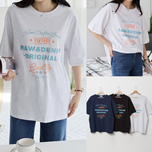 Destijl HC06 국내생산 스판 7부소매 깔끔한 라운드 반팔 데일리 티블라우