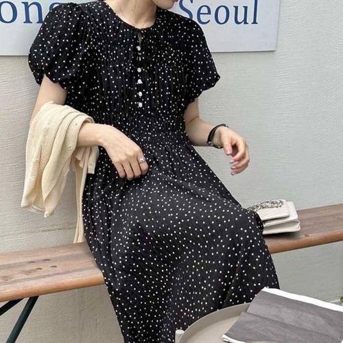 도트 땡땡이 반팔 롱원피스 쉬폰 라운드 원피스 WFLX6AG